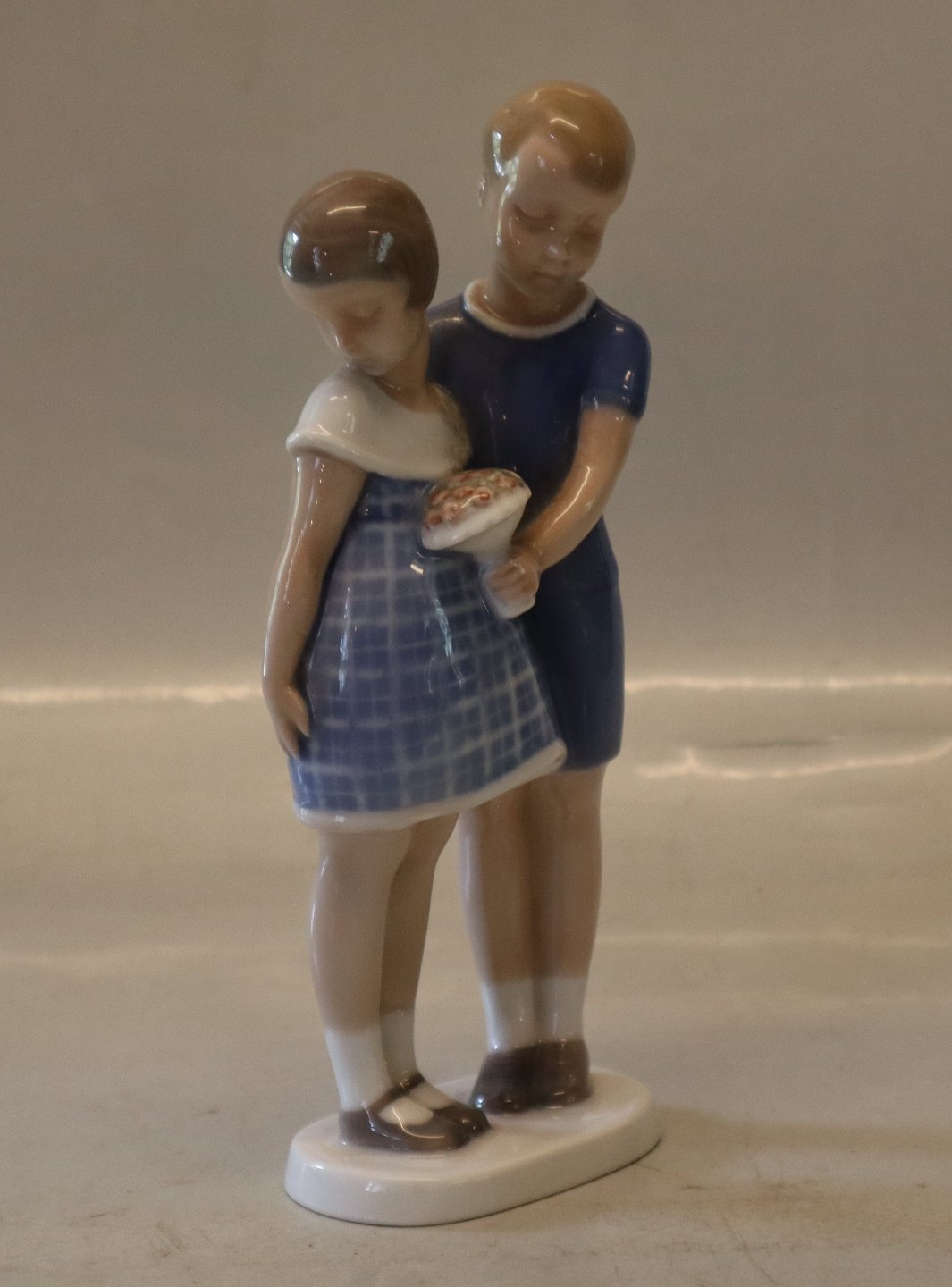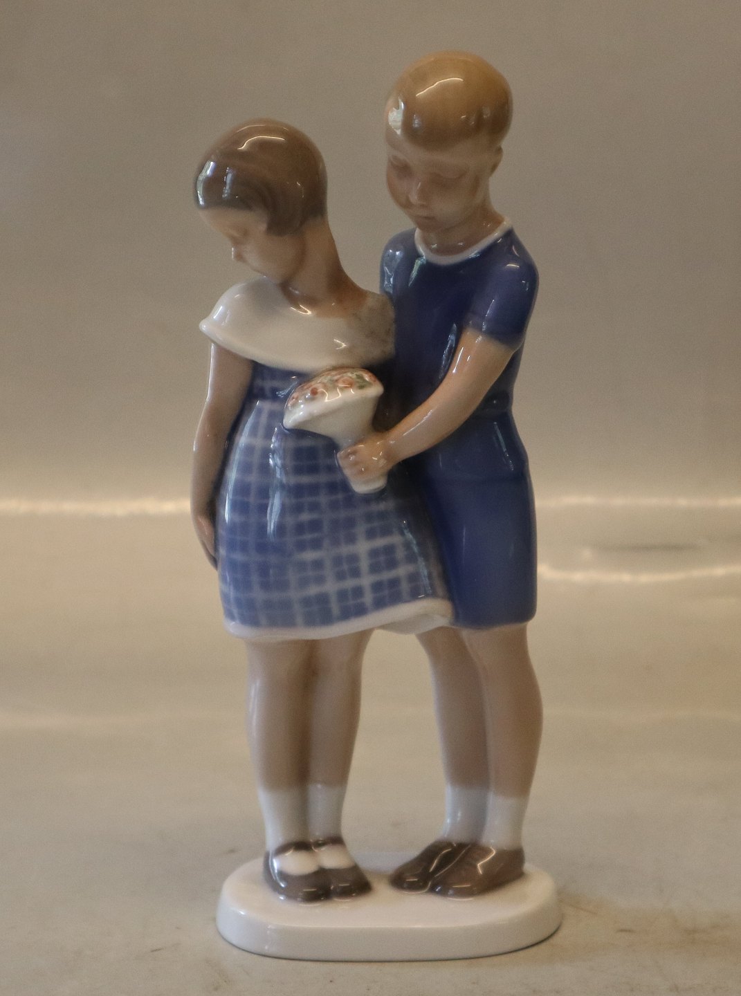 Bing & Grøndahl figur B&G 2183 Dreng og pige med blomster 18,5 cm Claire Weiss 1933