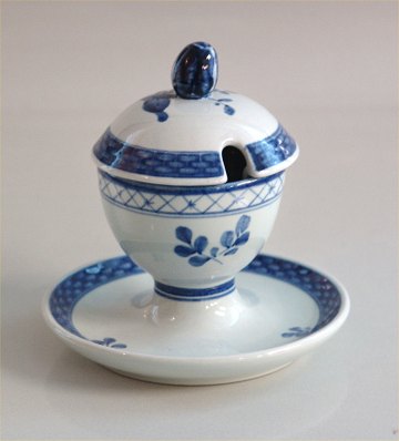 Aluminia Trankebar Fajance 11-1010 Sennepskrukke på fod 11 x 11 cm