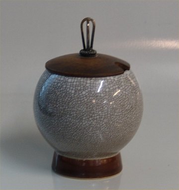 Beskrivelse: Bing & Grøndahl 374 Krakkeleret skål på fod trælåg med sølvmontering 830 S14 cm I fin stand - sølvet skal pudses