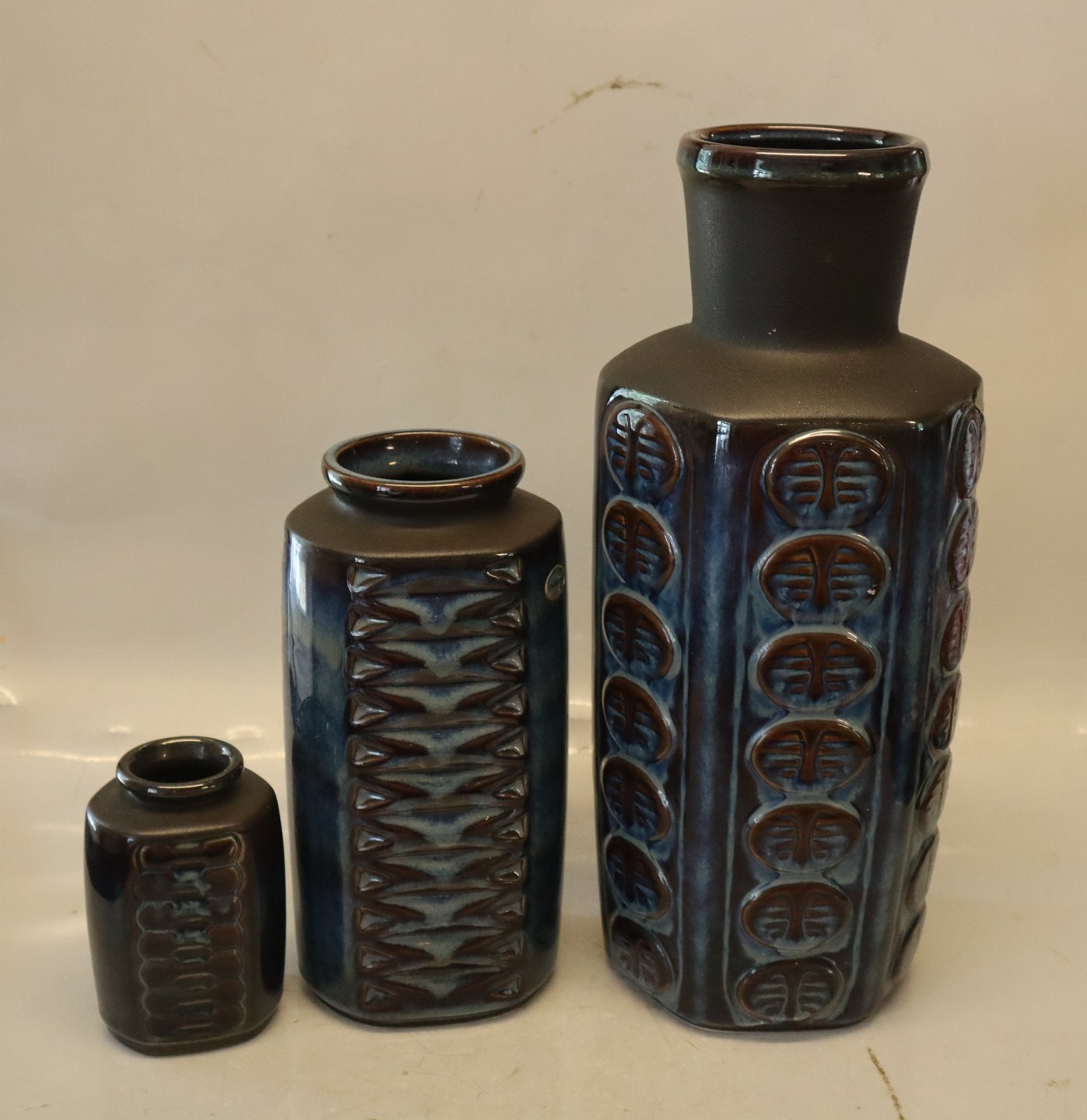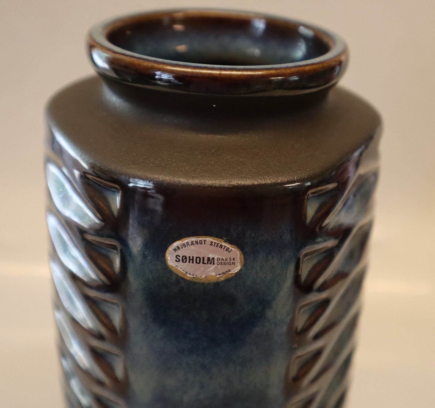 Søholm 3346 Blå trekantet vase 22.2 cm Stentøj EJ 64 Serien Design Einer Johansen - Bornholmsk Retro Keramik fra Søholm