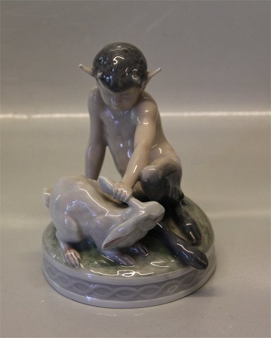 Beskrivelse: Kgl. figur fra Royal Copenhagen 0439 Faun med hvid kanin 13.5 Chr. Thomsen 2. sort I hel og fin stand