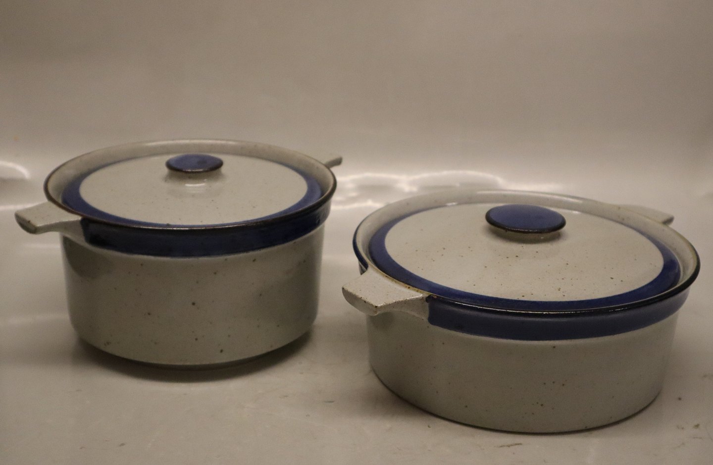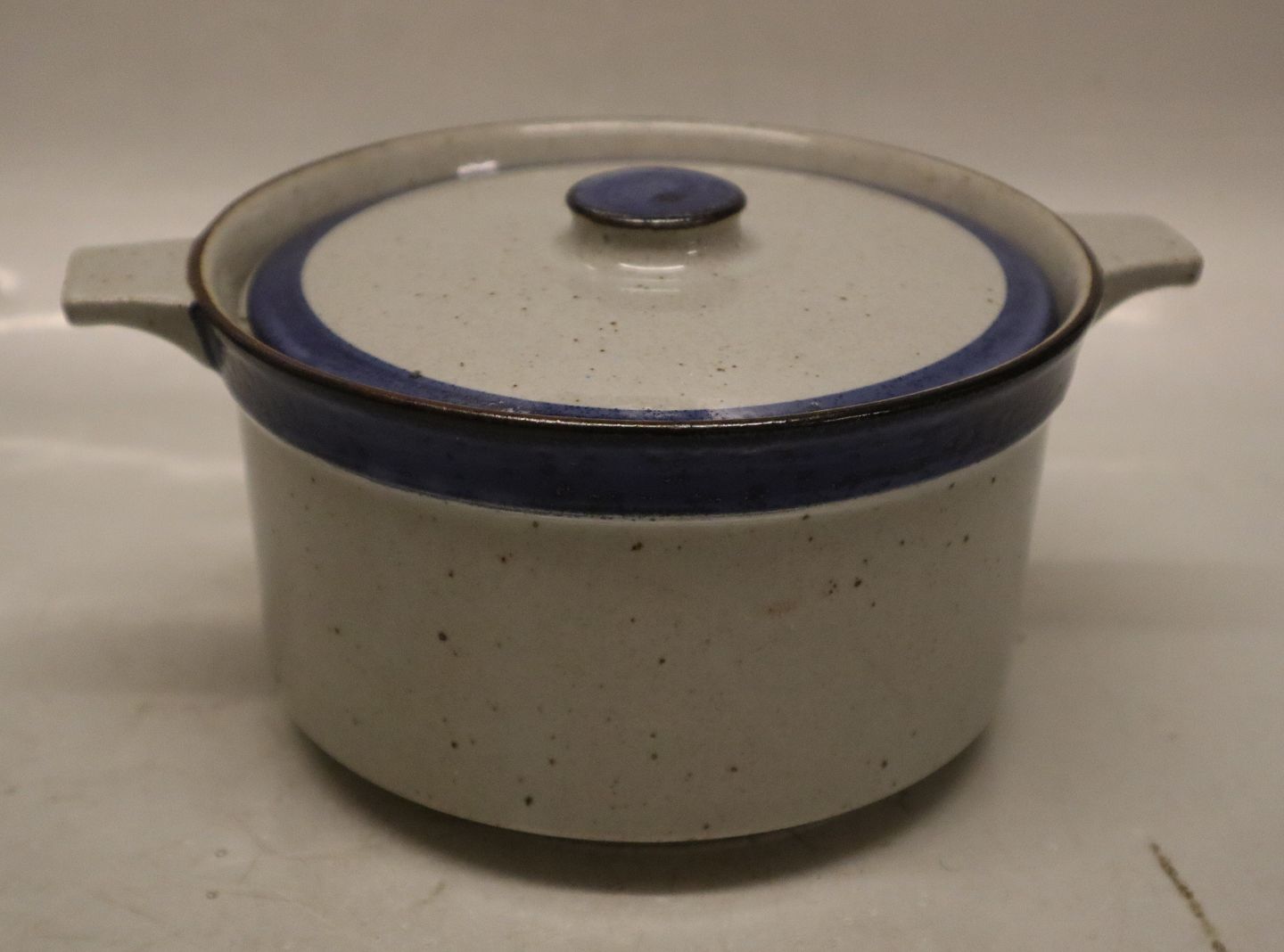 Stor lågskål med ører 10 x 16 cm Christine, Knabstrup Keramik Testel - gråt med blå kant, Spisestel, Kaffestel