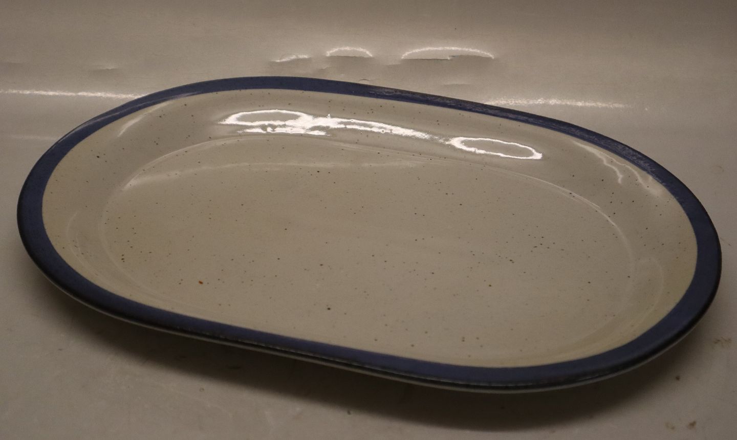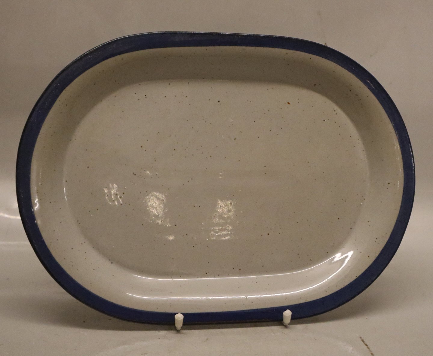 Ovalt fad 36.5 x 26 cm Christine gråt og blåt Stentøjs Spisestel Knabstrup