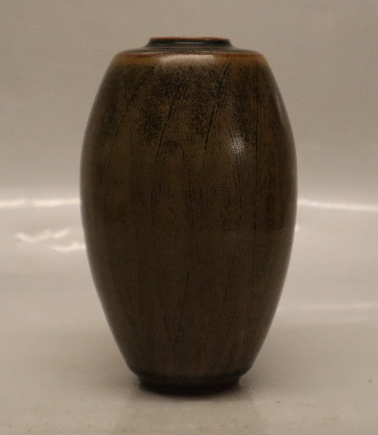 Kongelig Dansk Stentøj Kgl. Nils Thorsson Vase brun glasur med stregmønster 14 cn