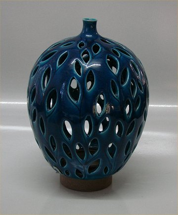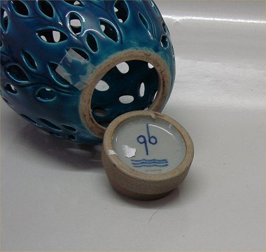 Beskrivelse: Royal Copenhagen stentøj Turkis potpourri Signeret GB Gerd Bøgelund (f. 1923) 20 cm I fin og hel stand Turquoise