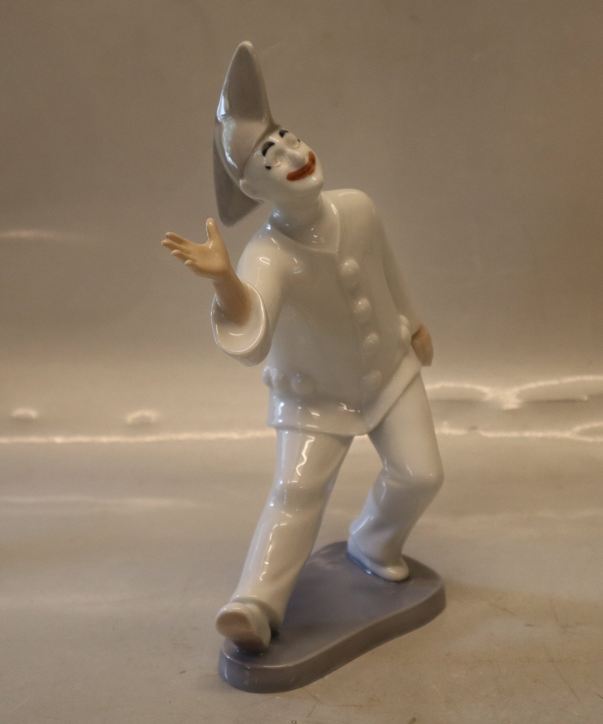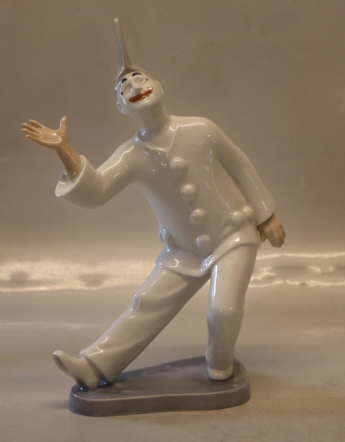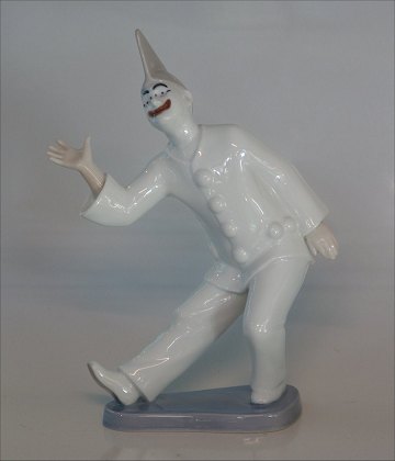 Beskrivelse: Bing & Grøndahl B&G 2353 Pjerrot ES SV 25 cm. I fin og hel stand Kendt fra Tivoli og pantomime sammen med Columbine, Harlekin og Pjerrot