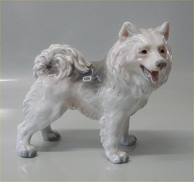 Beskrivelse: Dahl Jensen. 1082 Grønlandsk hund Samoyedehund (DJ) 18 cm Mærket med kongelig krone og DJ Copenhagen