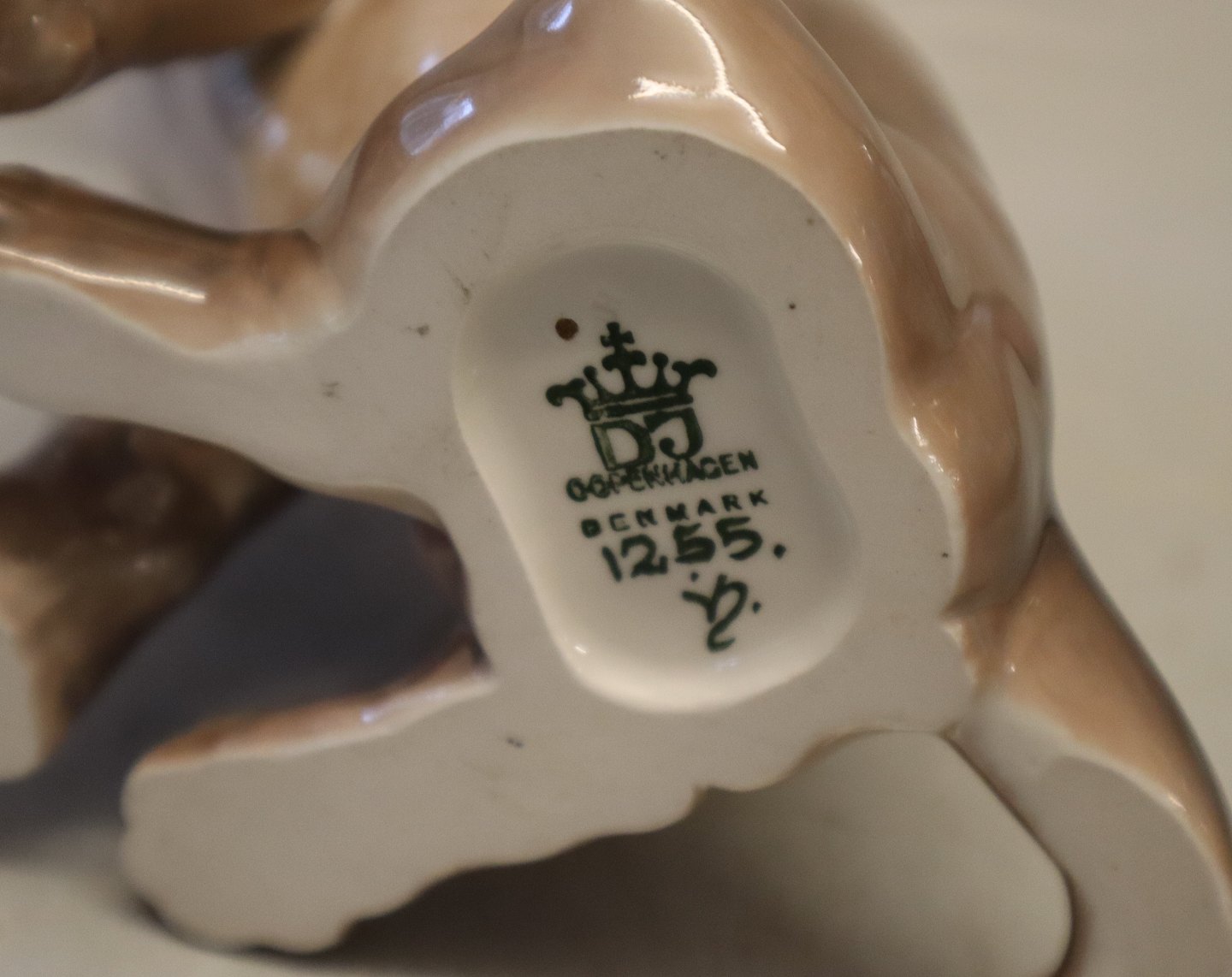 Beskrivelse: Dahl Jensen. 1255 Broholmer hvalp (LJ) 17 cm Mærket med kongelig krone og DJ Copenhagen i hel og fin stand.