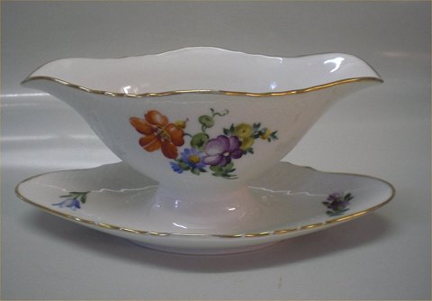 Royal Copenhagen Frijsenborg. 1871-910 Sauce bowl, oval 4 7/10" x 9 2/5" Multifloral decoration on curved cream porcelain with gold rim