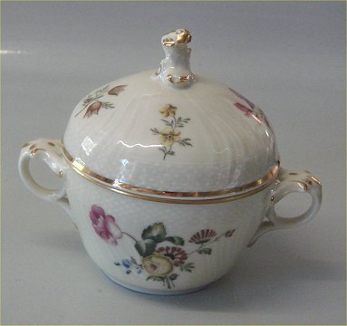 Royal Copenhagen Frijsenborg 1865-910 Sukkerskål 13 x 11 cm Blomstermotiver på svejfet stel med guldkant.