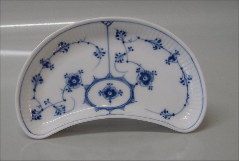 Beskrivelse: Royal Copenhagen Musselmalet riflet 154-1 Asiet, lille halvmåne 9 x 17 cm. I fin og hel stand