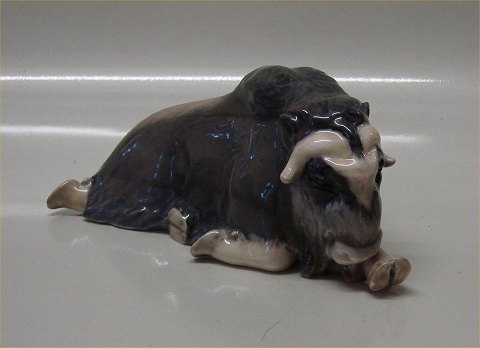 : Kongelig Dansk Figur 1443 Muskus Okse 9 x 13 cm Design A. Nielsen 1913 2. sortering I hel og fin stand Moskusokse