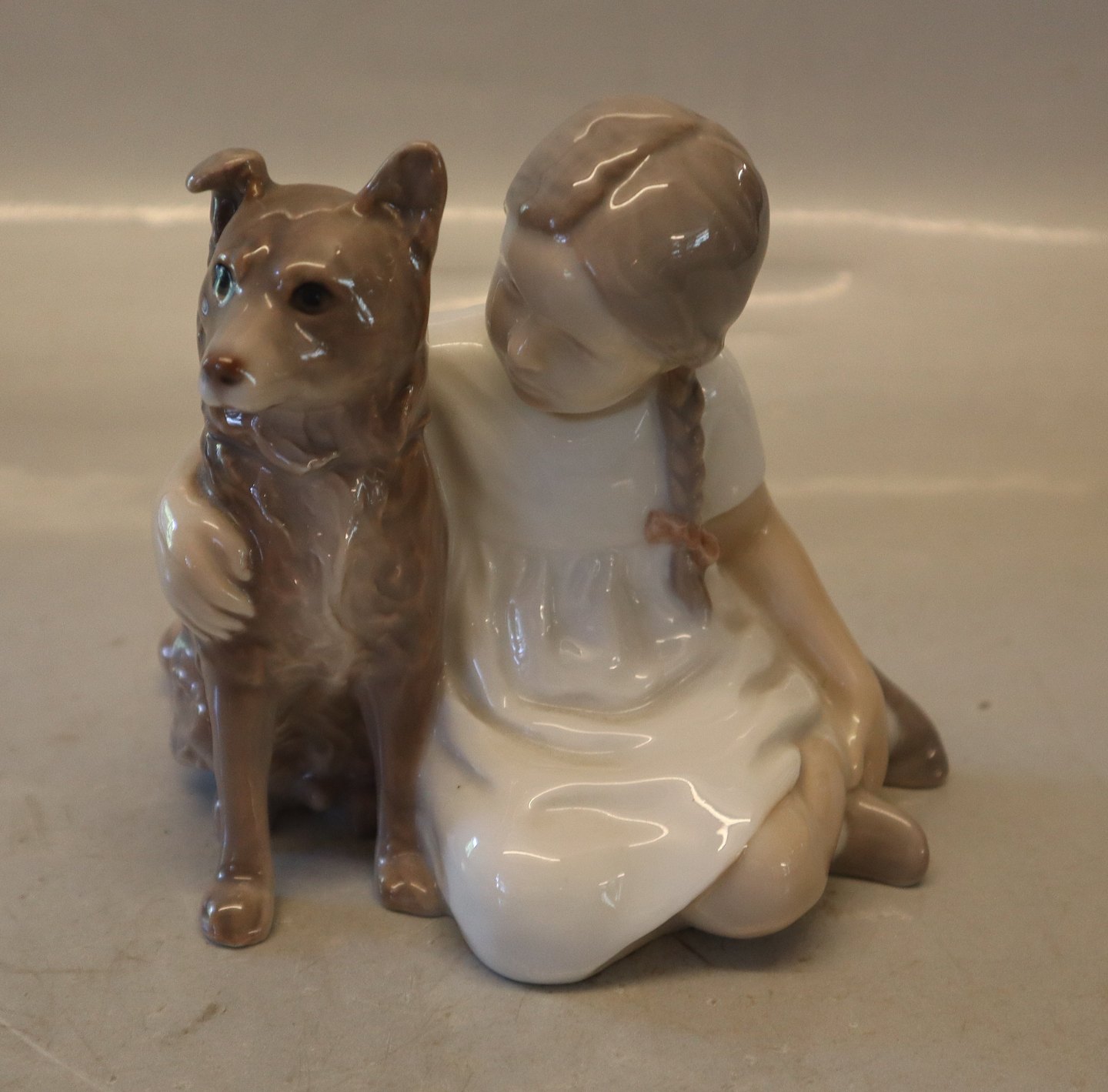 Beskrivelse: Bing & Grøndahl B&G 1973 Pige med hund 12 x 15 cm. I fin og hel stand.