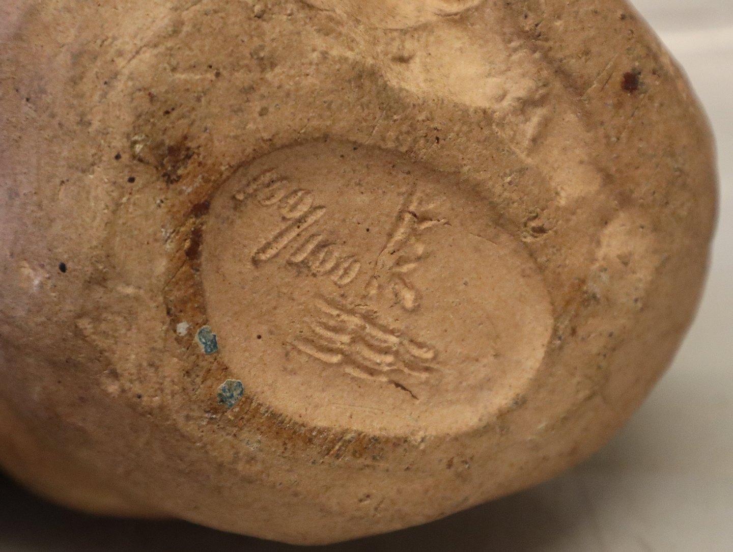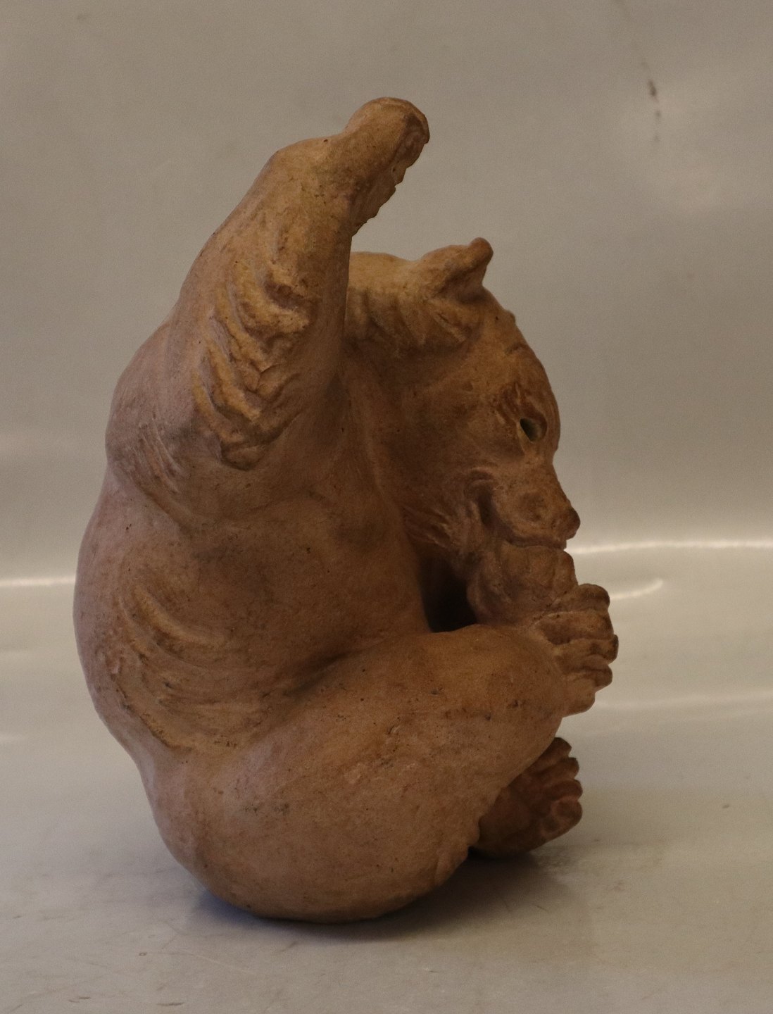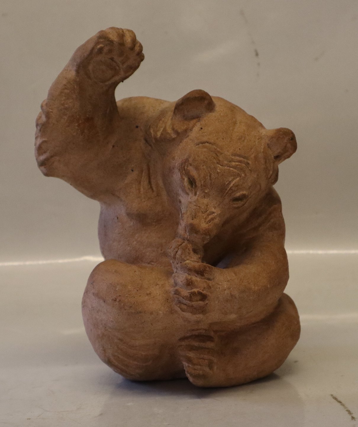 Unika Kgl. uglaseret Knud Kyhn Bjørn 23 x 17 cm stemplet 100-100 Kongelig Dansk Stentøj