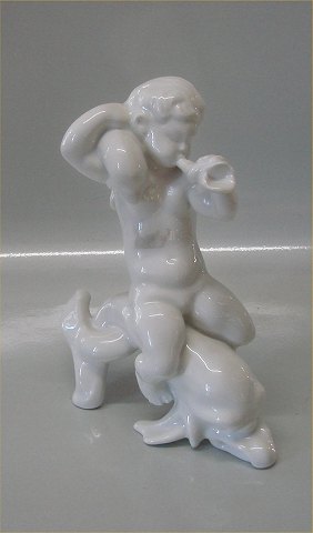 : Bing & Grøndahl B&G 4059 Dreng på delfin blæser i horn 21 cm Kai Nielsen I fin og hel stand.
