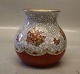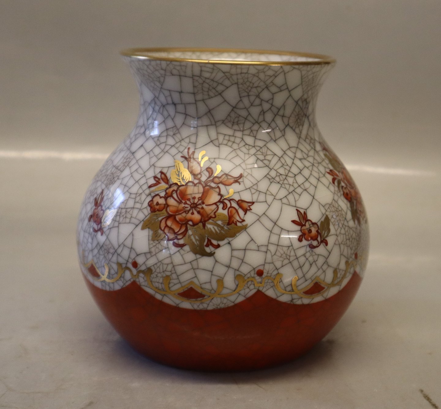 097-349 DJ Vase Rød med blomst på grå og med guld kant 14 x 14 cm Dahl Jensen Craquelé, (Crackelure)