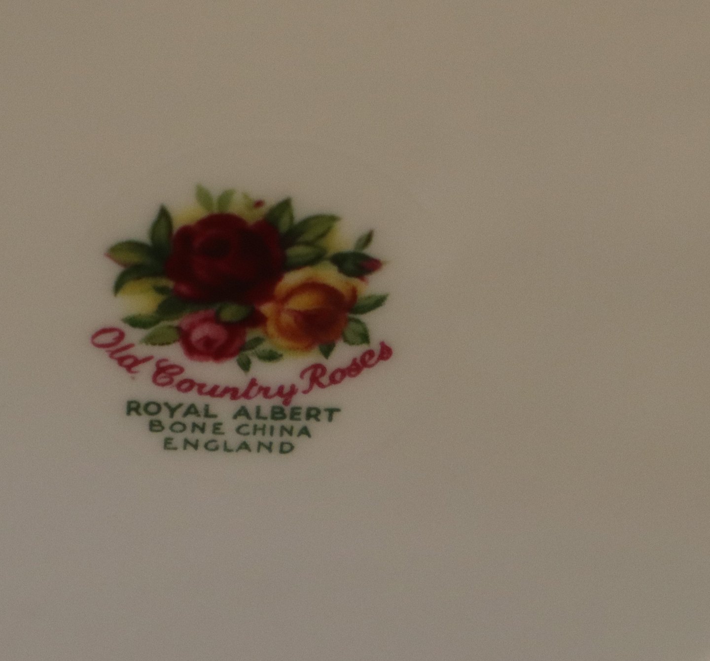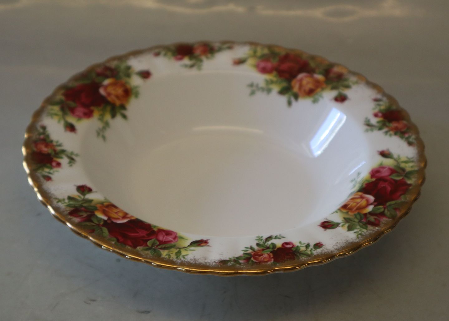 Suppetallerken 20,7 cm Landsbyrose Royal Albert Old Country Roses Bone China England. I God brugt stand