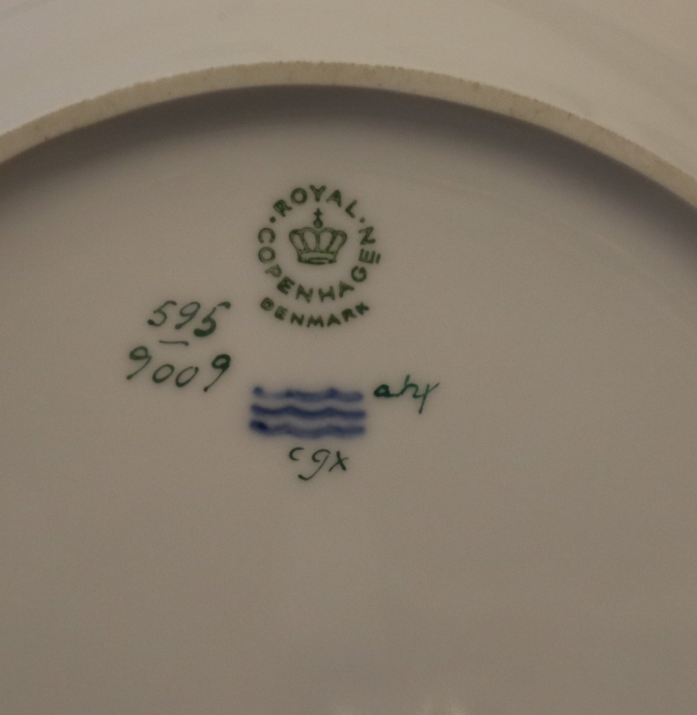 9009-595 Ovalt stegefad 37 cm Guldkurv #595 Kongelig Dansk