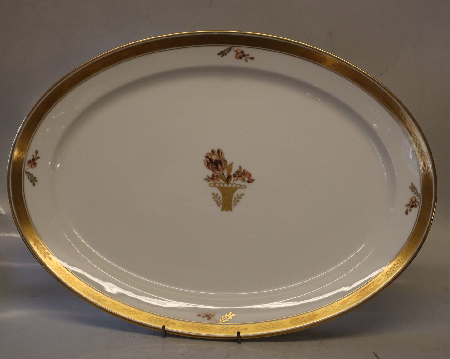 Kgl. 9010-595 Ovalt stegefad 41,3 cm Royal Copenhagen Guld dekoration på hvidt porcelæn 1927. I hel og fin brugt stand Golden Basket