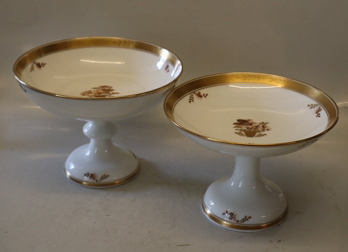 9045-595 Footed fruit dish 15 x 21 cm Royal Copenhagen Golden Basket . Gold decoration on white porcelain - flowers in a basket - broad rim gold 1927