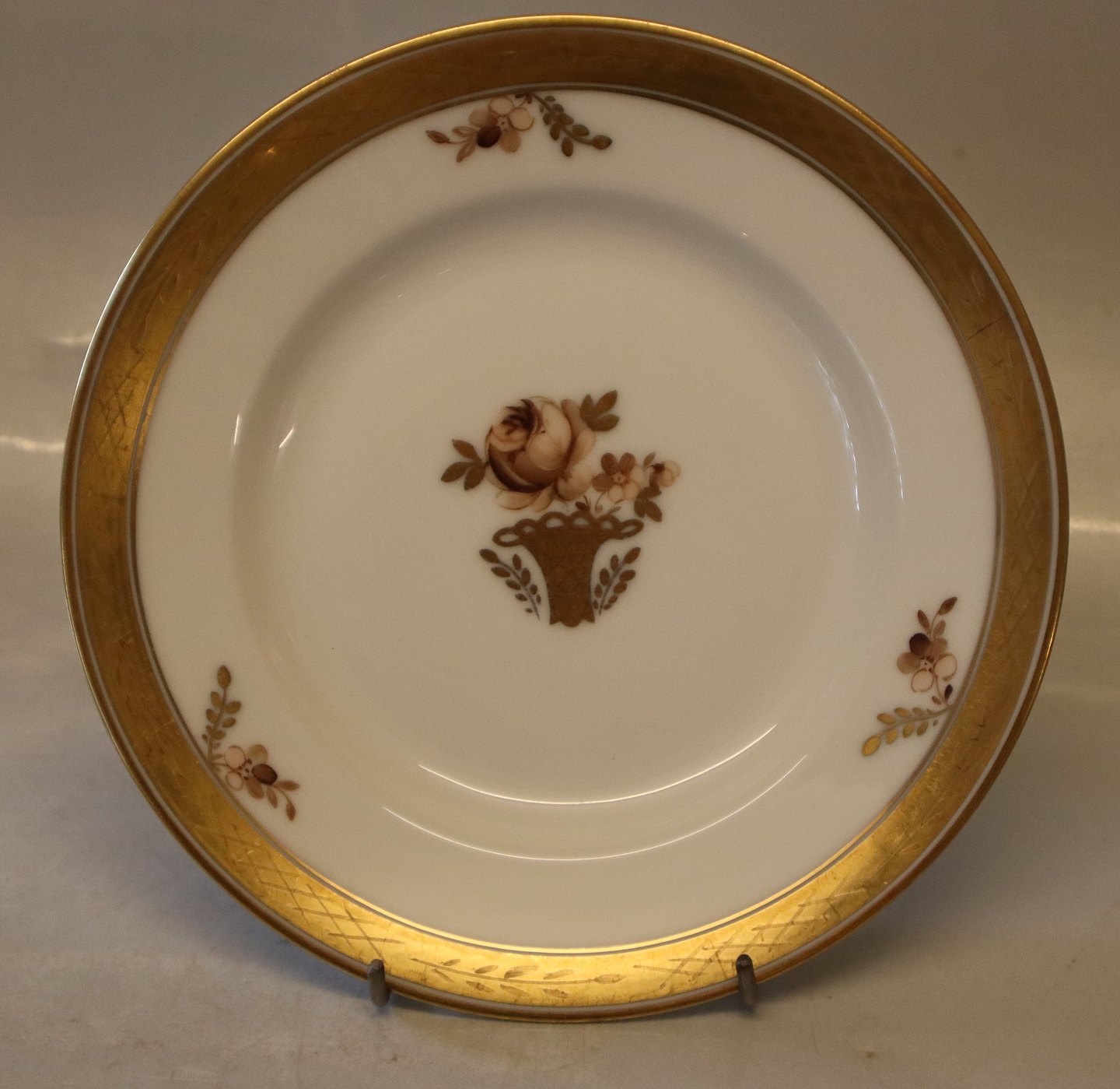 Kgl. 9054-595 Kagetallerken 17.5 cm Royal Copenhagen Guld dekoration på hvidt porcelæn 1927. I hel og fin brugt stand Golden Basket