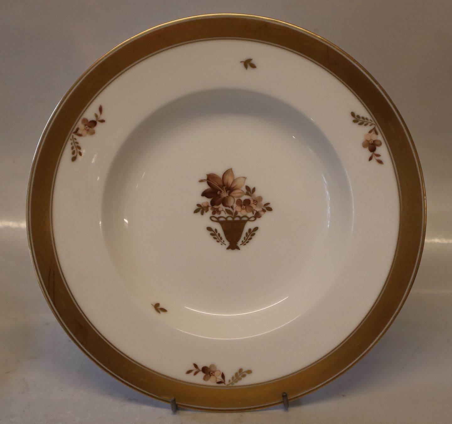 Kgl. 10516-595 Lille dyb tallerken 22.5 cm Royal Copenhagen Guld dekoration på hvidt porcelæn 1927. I hel og fin brugt stand Golden Basket