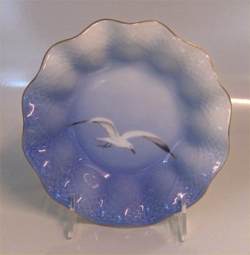 Bing & Grøndahl Mågestel med guldkant. 227 Asiet bølgeform 18 cm I hel og fin stand