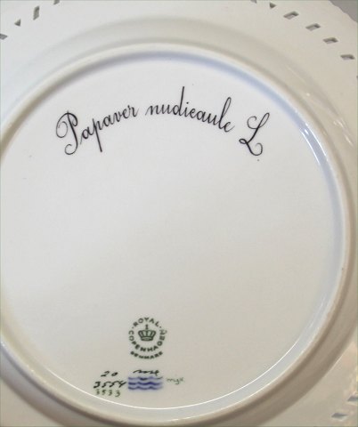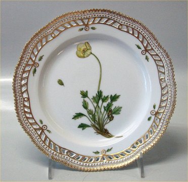 Kongelig Dansk Porcelæn Flora Danica 20- 3554-3533 "Papaver Nudiauele L" Flad tallerken med gennemskåret bort