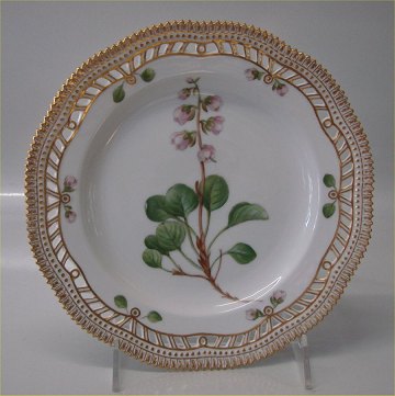 Kongelig Dansk Porcelæn Flora Danica 20- 3554 Pyrola Grandiflora Rad. Flad tallerken med gennemskåret bort 23 cm