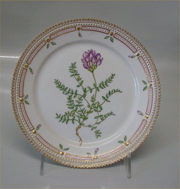 Beskrivelse: Royal Copenhagen Flora Danica 20-3572 Arenarius Arenarius Mull Frokosttallerken, ekstra flad Nyt nr. 623 Blomstermotiver på guldbelagt perlestel. 1. sortering i fin og hel stand Samme diameter som 3550