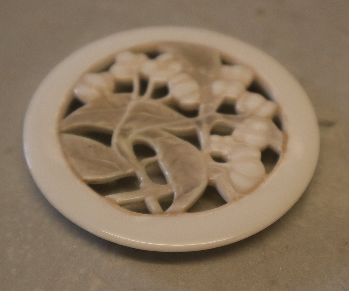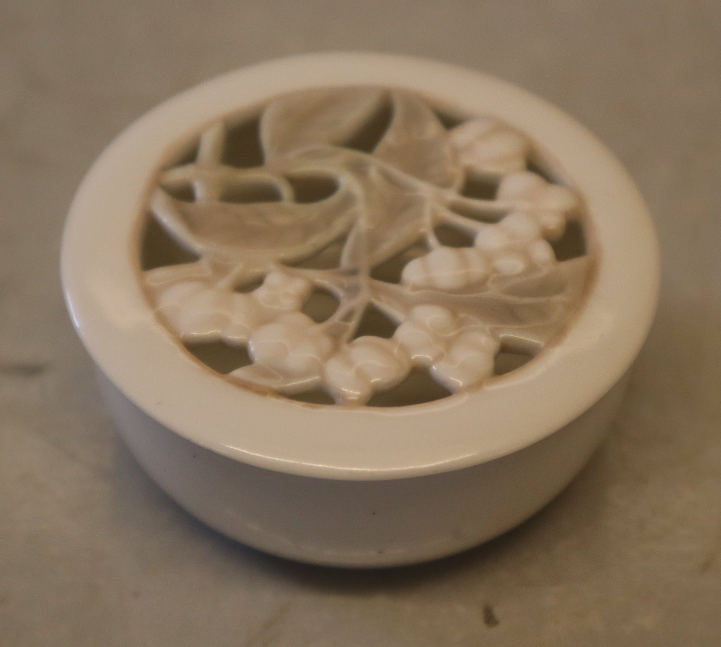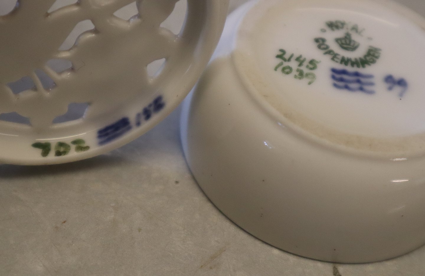 Beskrivelse: 2145-1039 Kgl. Lille Art Nouveau lågskål 5.7 cm 702 med blomster i relief 6 cm Porcelæn fra Royal Copenhagen I hel og fin stand