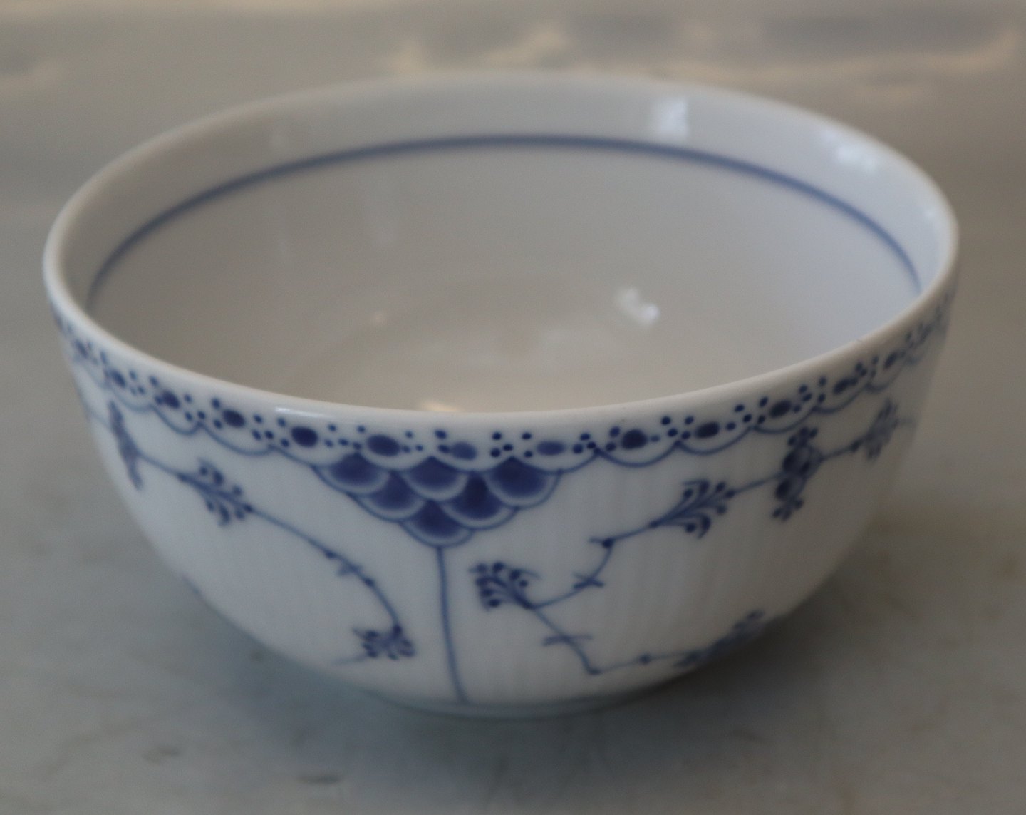 593-1 Skylleskål 7.6 x 14.5 cm Kongelig Dansk Porcelæn Musselmalet Halv blonde. I fin og hel stand Blue Fluted half lace