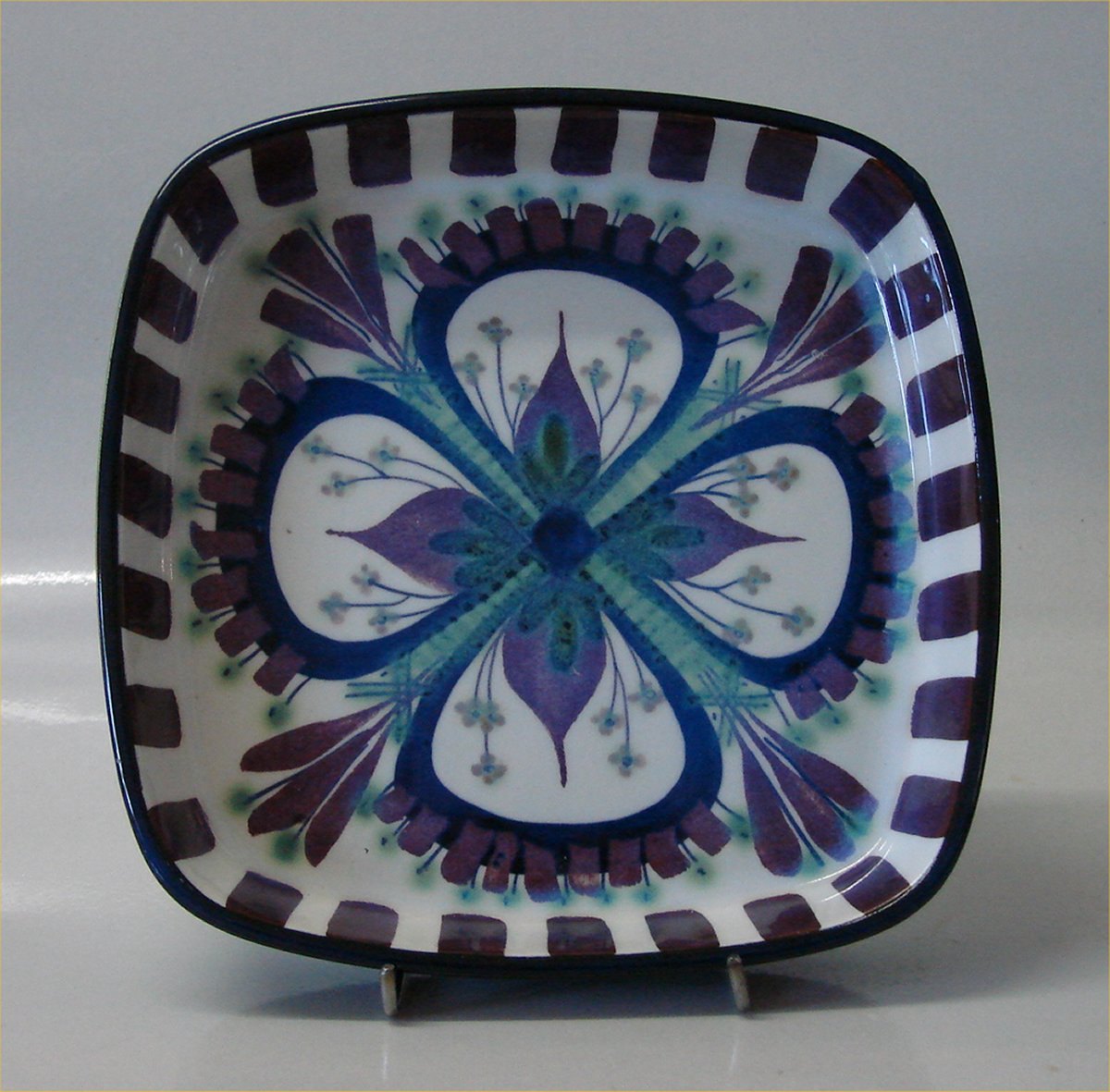 142-2883 Firkantet blå skål 17 x 17 cm Tenera. Marianne Johnson Royal Copenhagen Aluminia Tenera fajance Signeret MJ