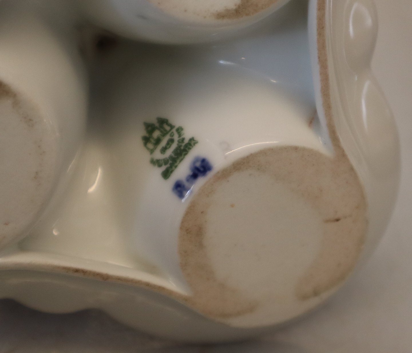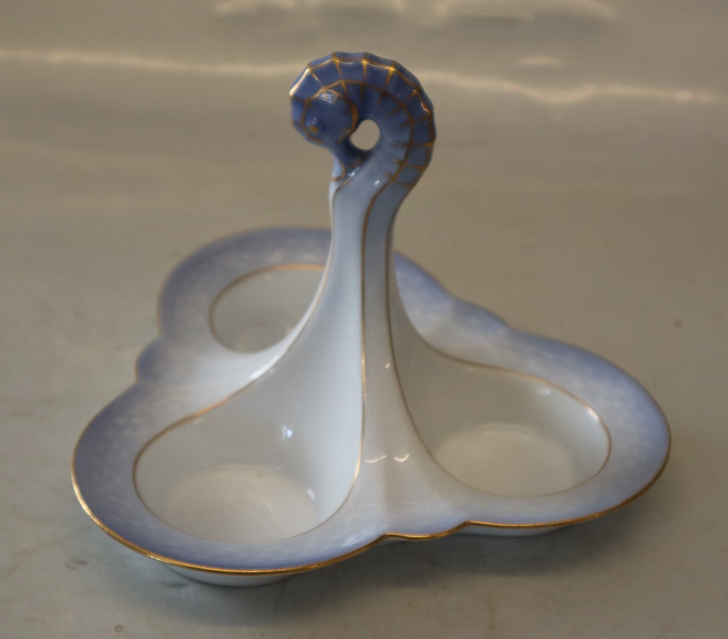 052 Trekantet plat de menage med søhestehank 13 x 16.5 cm B&G Mågestel med guldkant