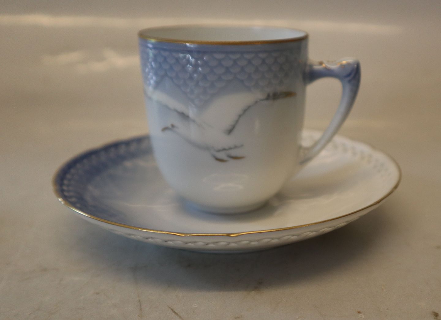 106 Moccha Cup 5.5 cm & saucer 11.8 cm with pirced rim (463.5) Bing & Grondahl Copenhagen Dinnerware Seagull with gold. Bing & Groendahl In nice and mint condition Espresso