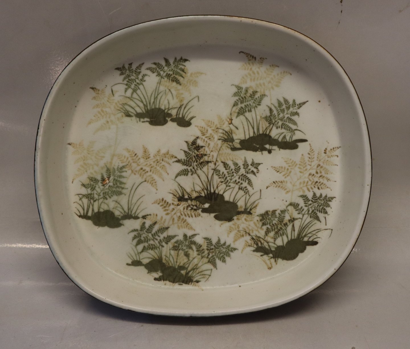 1050-5305 Kgl. Aluminia Diana Stenfad Fad med bregner 23.5 x 26.5 cm Nils Thorsson Aluminia kunstfajance