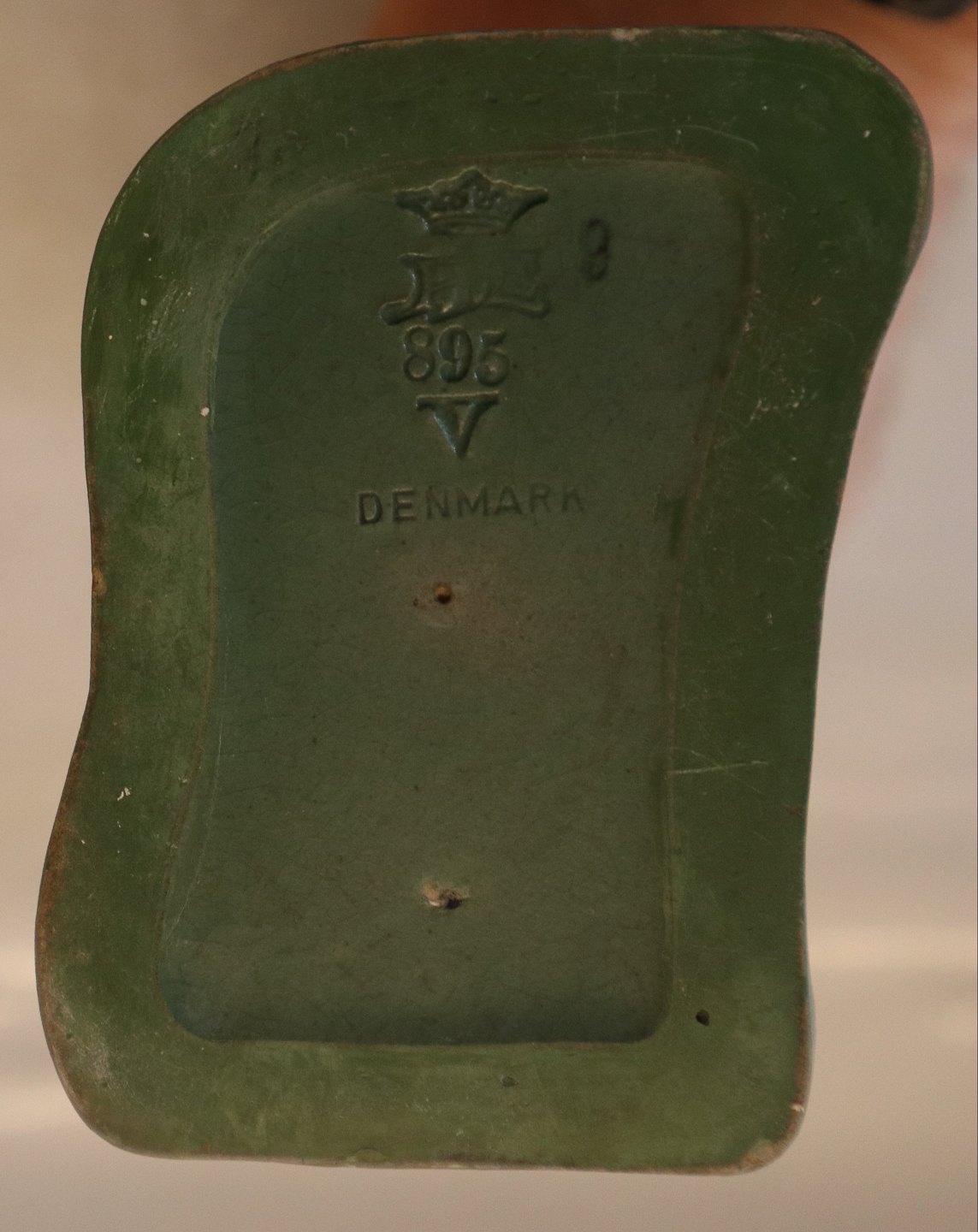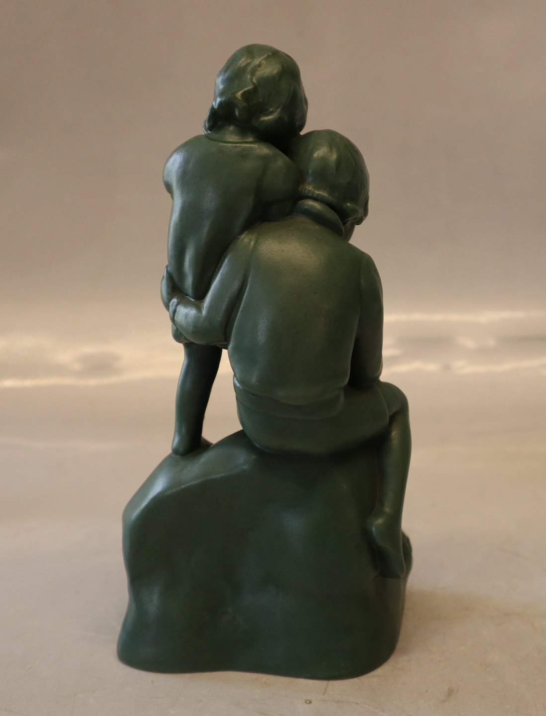 895 V Børn med krabbe på sten 18 cm Vicken v Post Börjeson 1927 Grøn P. Ipsens Enke Keramik fra P. Ipsens Enke Kgl. Hof. Terracottafabrik 1843-1955 I god brugt stand