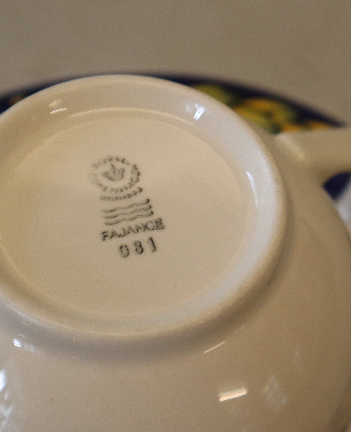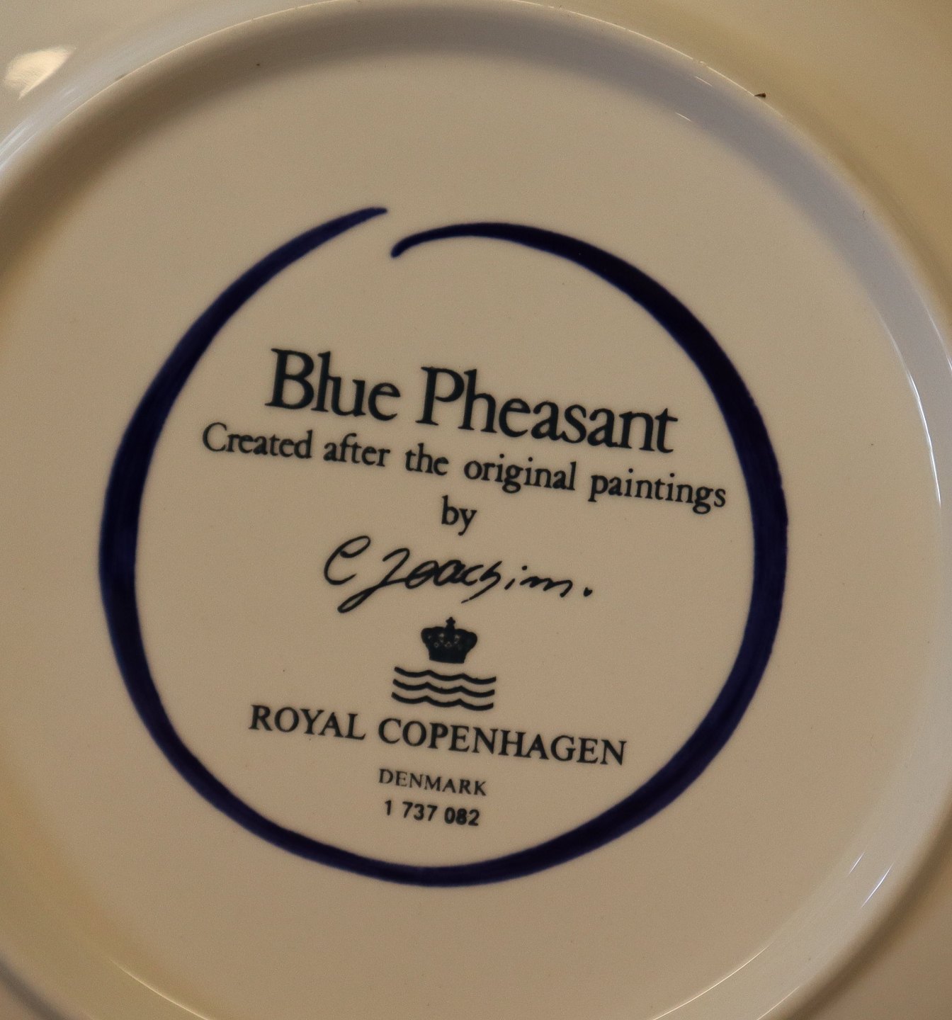 081 Tekop 6.5 x 10 cm + hank 082 underkop 15 cm (1737082) Royal Copenhagen Fajance Blå Fasan Chr Joachim