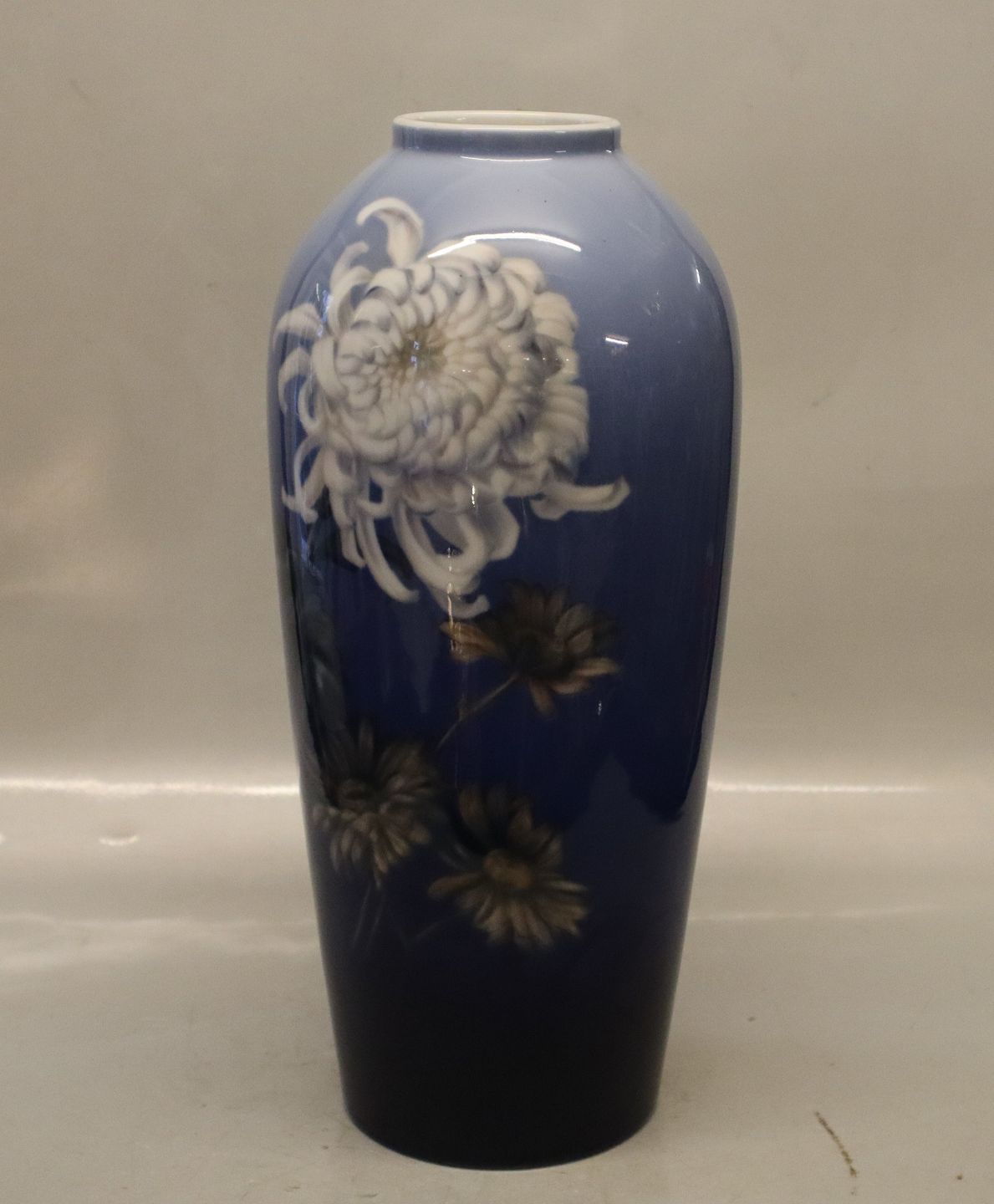 B&G 7071-14 Vase med hvid blomst på blå baggrund 36 cm Signeret EB Bing & Grøndah