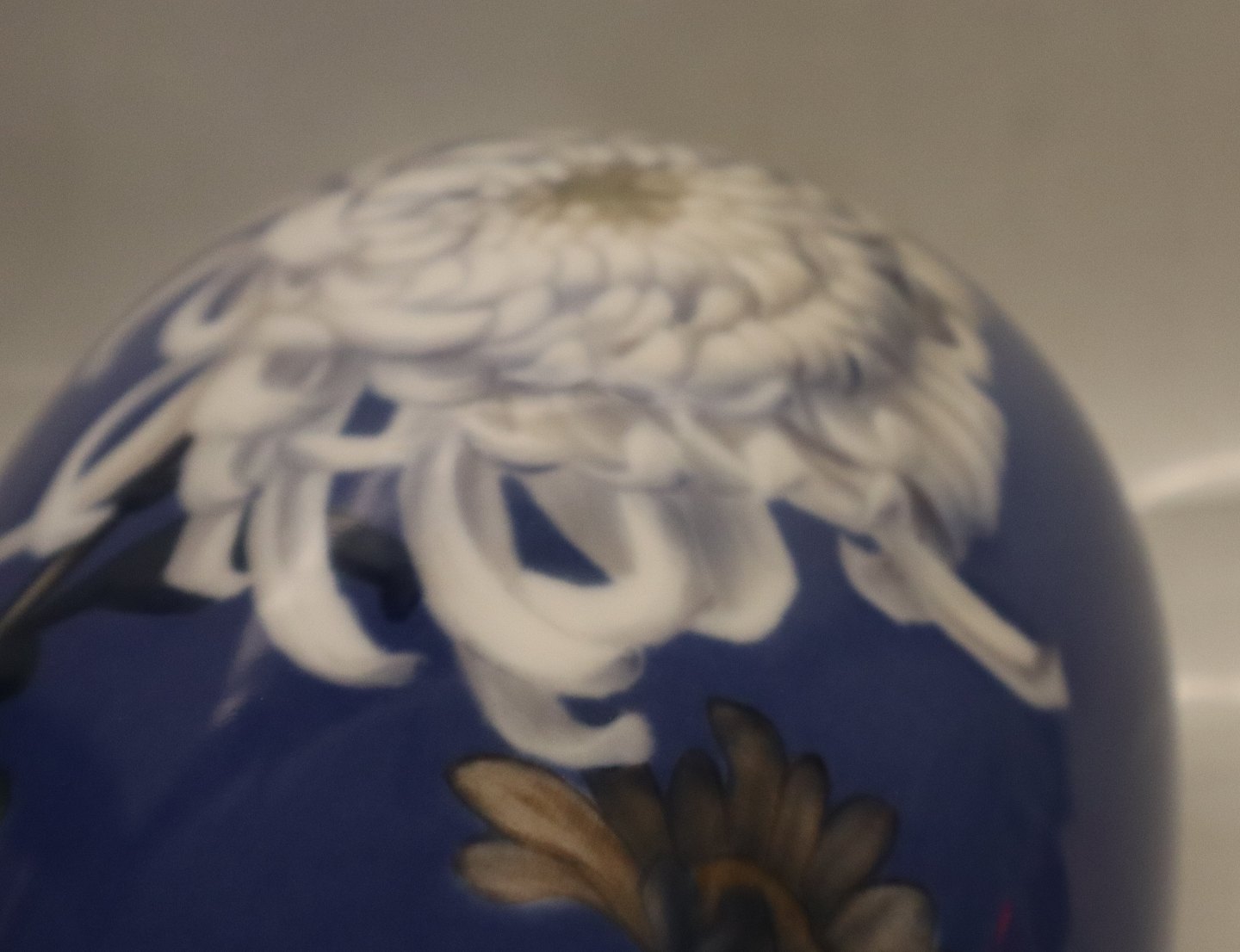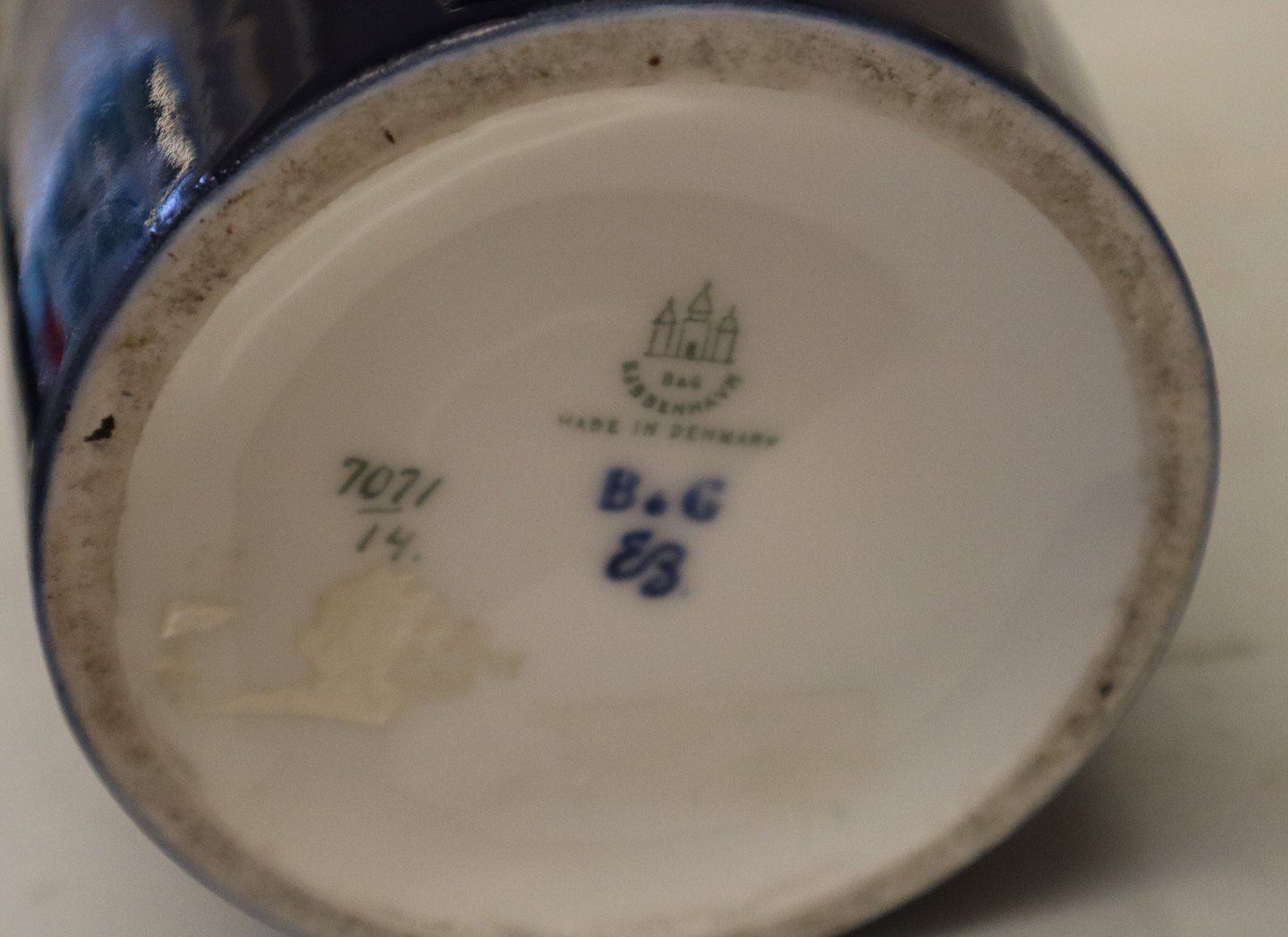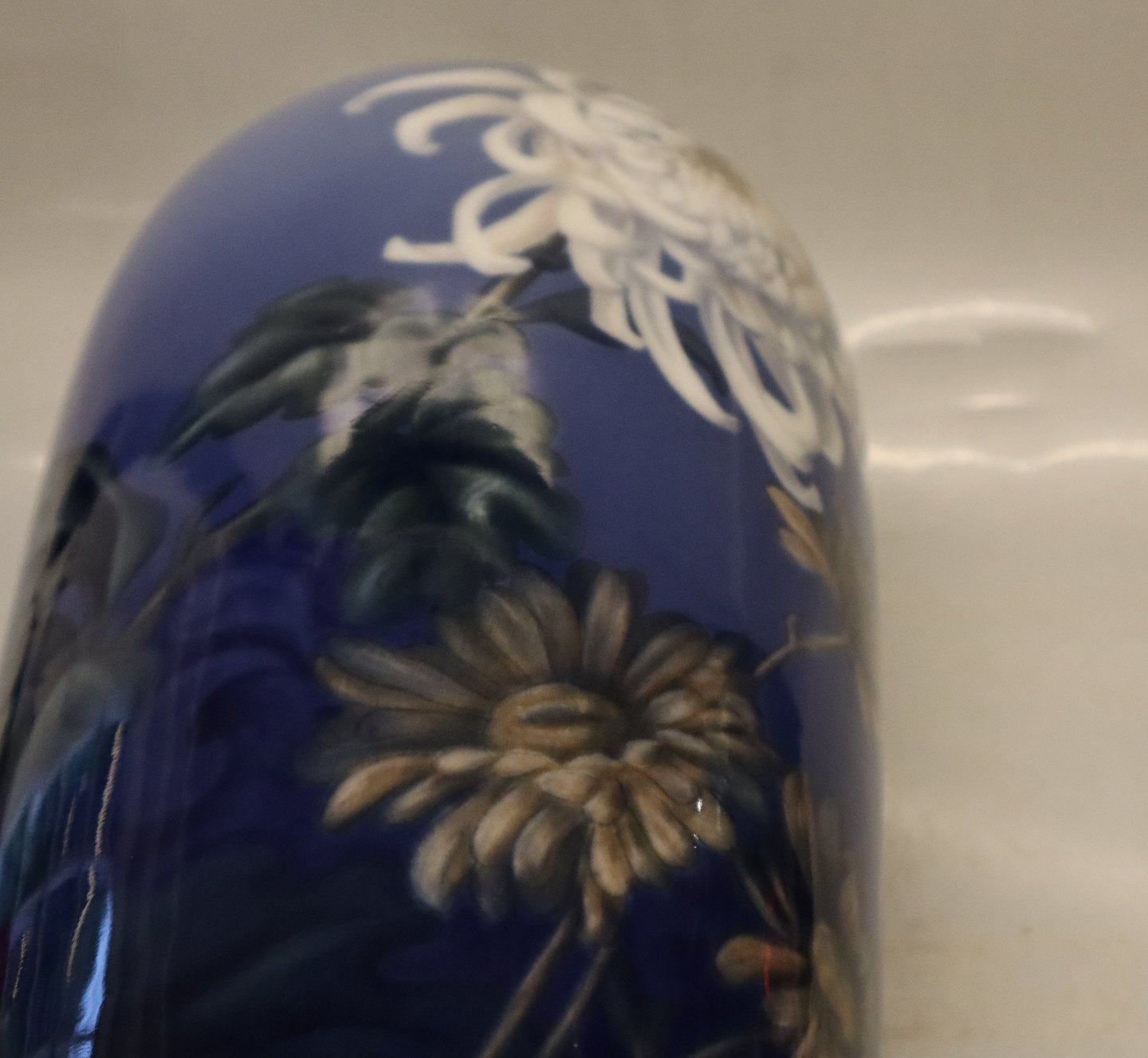 Beskrivelse: B&G 7071-14 Vase med hvid blomst på blå baggrund 36 cm Signeret EB
