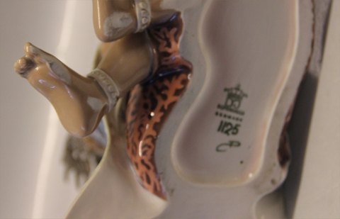Beskrivelse: Dahl Jensen. 1125 Siamesisk Tempeldanserinde 28 cm Mærket med kongelig krone og DJ Copenhagen 1. sortering og 2. sortering I hel og fin stand