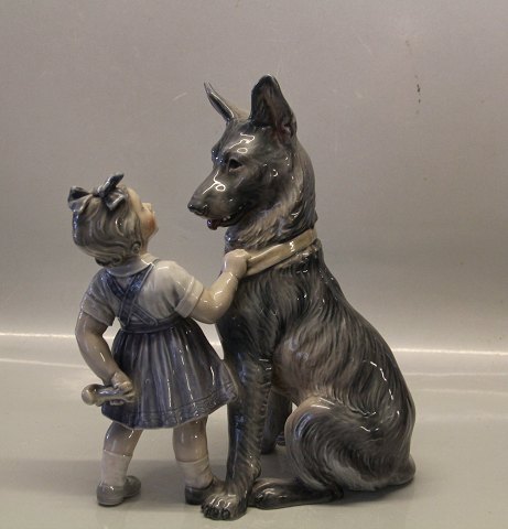 Dahl Jensen figur 1213 Pige med schæferhund 25 cm