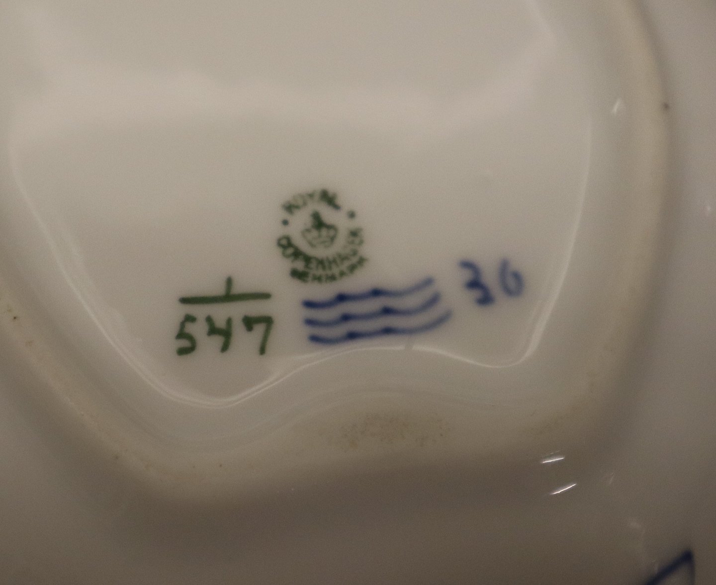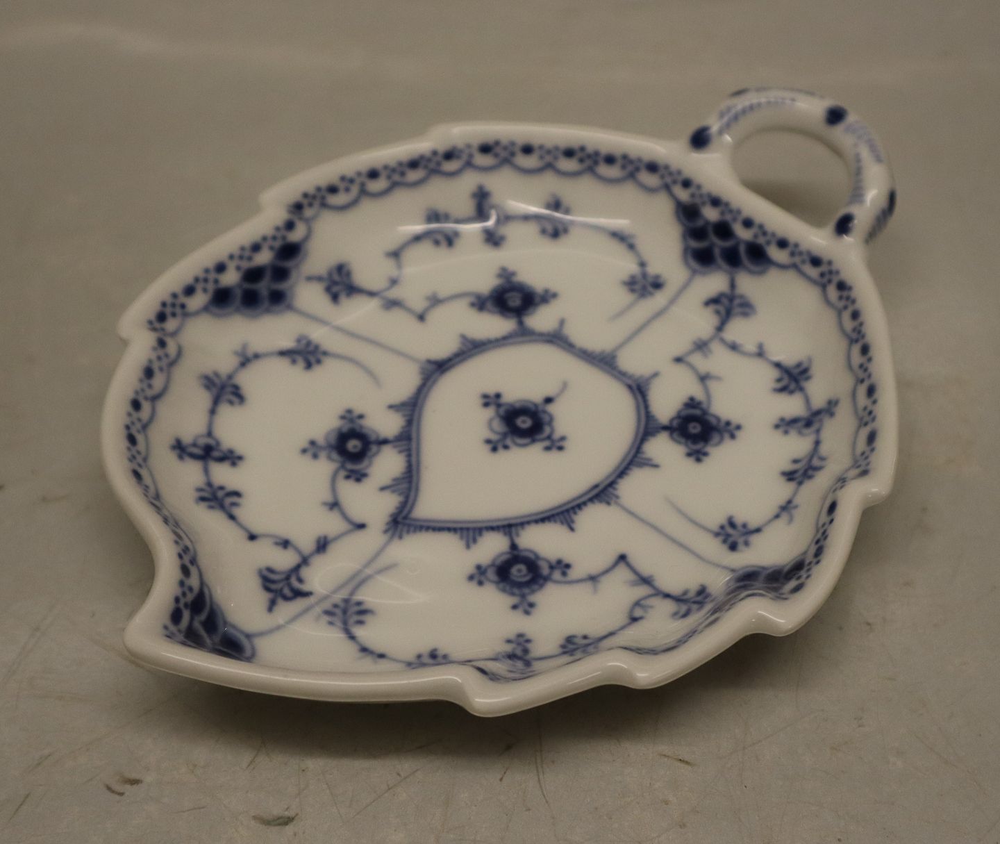 547-1 Asiet med hank 18,5 cm Kongelig Dansk Porcelæn Musselmalet Halv blonde. I fin og hel stand., 2. sort Blue Fluted half lace