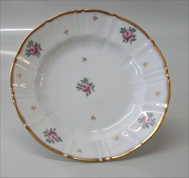 Bing & Grøndahl Roselil 325 Middagstallerkner 25 cm Hvidt kantet porcelæn med bred guldkant og strøblomster i Henriette stil. Bing & Groendahl mønster på samme form som Offenbach I hel og fin stand