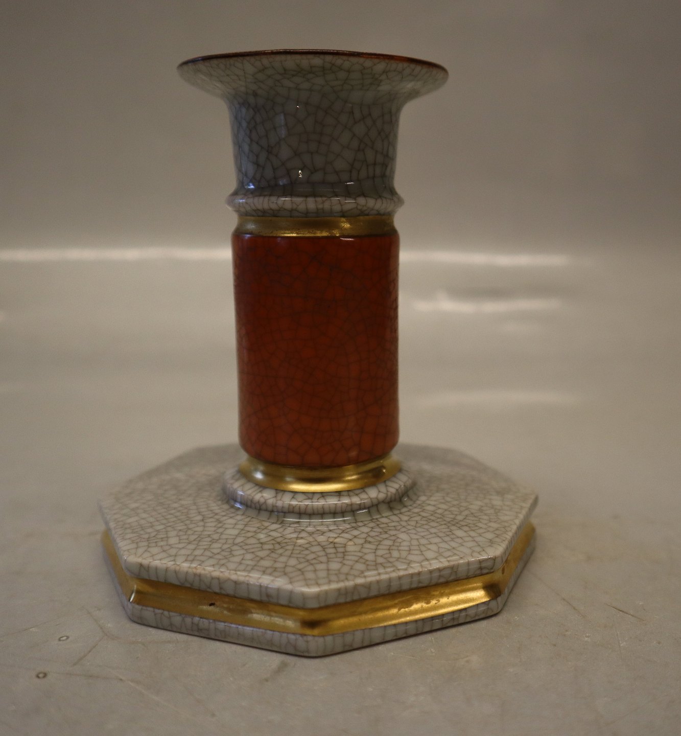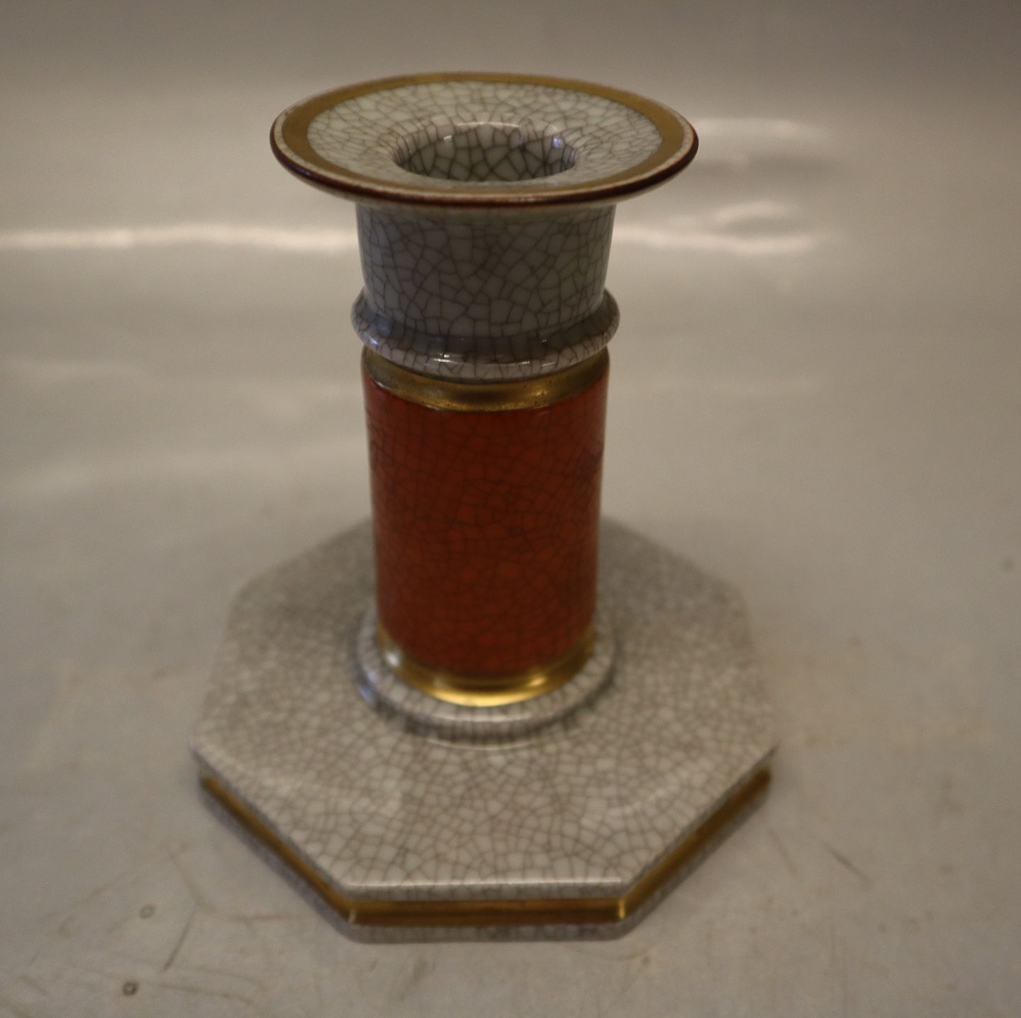 212-3303 Kgl. Lysestage med gråt, orange og guld 10,5 cm Kongelig Dansk Craquelé, Craquele
