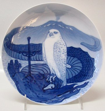 1898 Odd Fellow Ordenens hospital på Island. Den islandske falk siddende på en drage, der er genemboret med kårde, hvis parerplade er danet af tre ringe (sml. 14). Design Arnold Krog 2500 ekspl. 22 cm Iceland