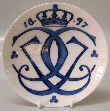 Beskrivelse: RC-CM # 8 Prinsesse Ingeborgs bryllup med prins Carl af Sverige. Kronet spejlmonogram CI og årstal 1897. Design: Arnold Krog 1,200 eksp. 17 ½ cm