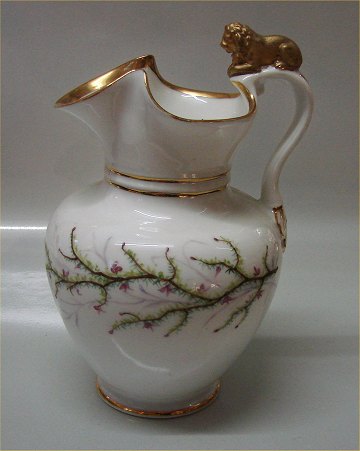 Beskrivelse: Bing & Grøndahl Antik løvekande med guld 25 cm I fin og hel stand Bing & Groendahl mærket med B&G før 1900 - efter 1855
