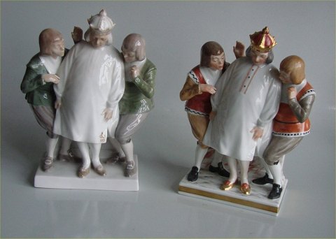 Beskrivelse: Kgl. figur fra Royal Copenhagen Overglasur 1288 Kgl. Kejserens nye Klæder Chr. T. 1911 20 x 15 cm 20 cm H. C. Andersen tema. I hel og fin stand
