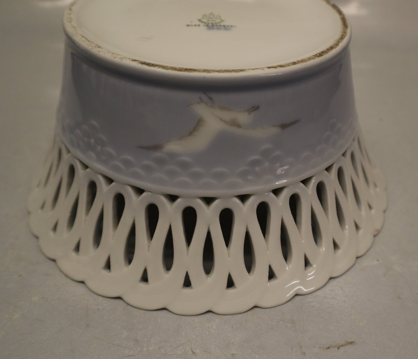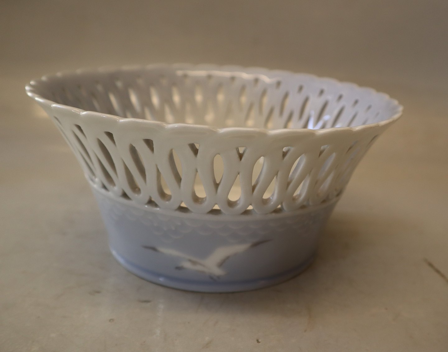Rund Frugtkurv med gennembrudt kant 10 x 20 cm 1902-1914 Bing & Grøndahl Mågestel uden guldkant. I hel og fin stand